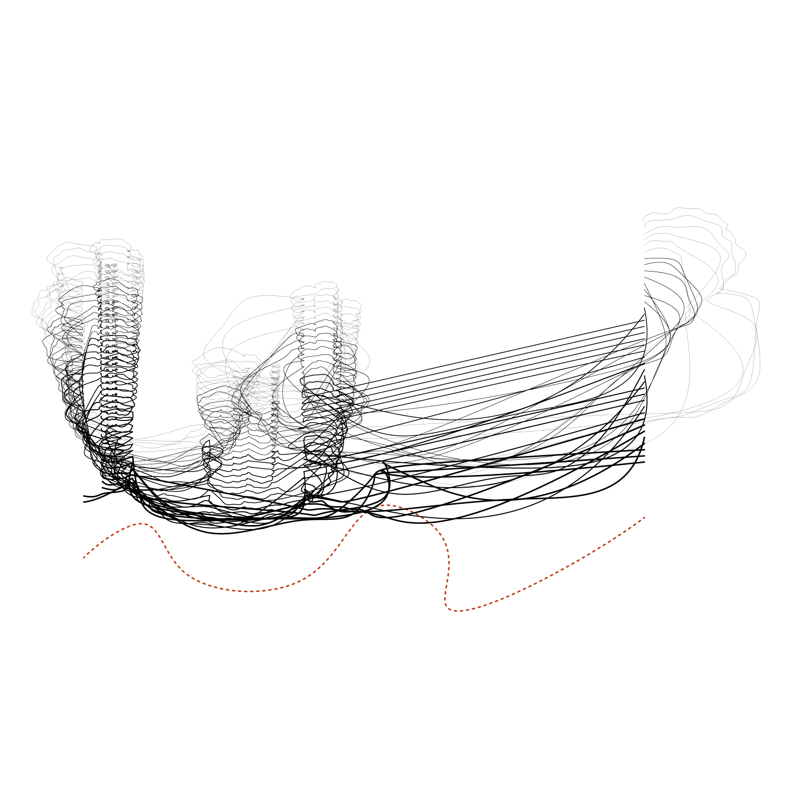 Observed is a phenomenon of change through exponential growth. A simple line can multiply and re-contextualize through re-operations to generate an array of fractilized forms & geometries. A Python script controls variations of fractilization through opertaions of recursion simulated using Rhinoceros.